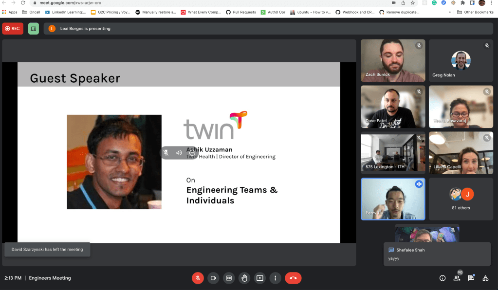 Today I attended monthly internal engineering meetup of WeWork as a guest speaker. I was invited by long time industry peer NHM Tanveer Hossain Khan who is a Principal Software Engineer there. I spoke about Engineering Teams & Individuals in relation to organizational health and team structure to an audience of 90+ software engineers. It was a good experience to be there virtually. Thanks to Perry Tiu, the engineering manager, who coordinated the session skillfully.